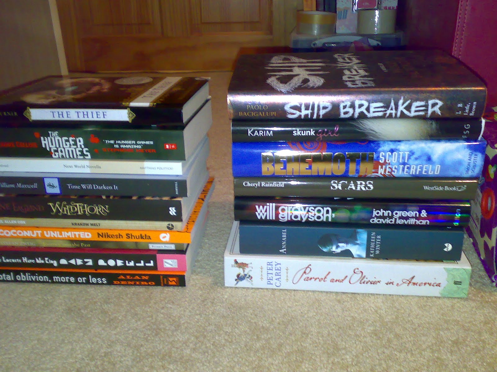 ‘Shipbreaker’ – Paulo Bacigallupi: You know I was very won over by ‘The Windup Girl’ so how could I resist the book everyone is touting as much better than that? I am hoping that with Shipbreaker being YA there will be less awful sex toy rape, because those were some squicky scenes to read whatever their value to the story.
